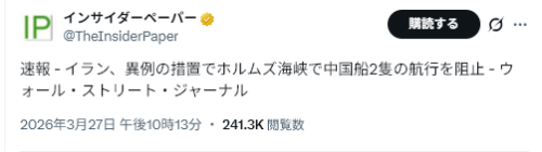 3/27阿波羅新聞網<最新! 打通伊朗封锁 阿联酋找数十国组“荷姆兹部队”= 速報!イランの海峡封鎖突破に向け、UAEは数十カ国に「ホルムズ海峡安全保障部隊」の結成を呼びかけている>