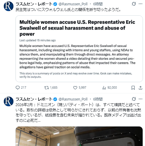 ジェフリーズ米下院民主党院内総務:民主党が下院で多数派を握れば、高騰する生活費の削減、崩壊した医療制度の改革、ICE(移民税関執行局)の規制、中東における無謀な選択をした戦争の終結、そして勤勉な米国の納税者の生活を日々、毎週、毎月、より良く、より楽にすることに尽力する。