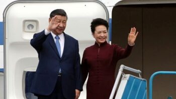 習近平国家主席(左)と夫人の彭麗媛氏(写真:代表撮影/AP/アフロ)