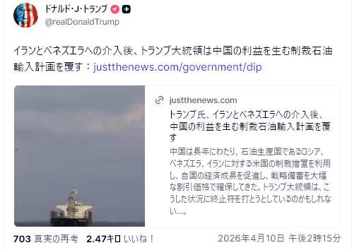 4/9阿波羅新聞網<💥中共损失惨重!川普突发重构伊朗权力版图=💥中共は大打撃を受ける!トランプは、突如イランの勢力図を再構築へ>