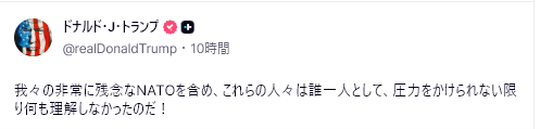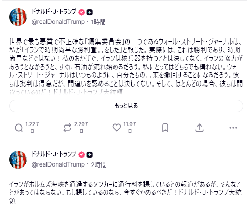 🇺🇸 トランプ大統領(午前8時) – 「イスラエルによるレバノン攻撃は停戦合意違反とはみなされるべきではない。」