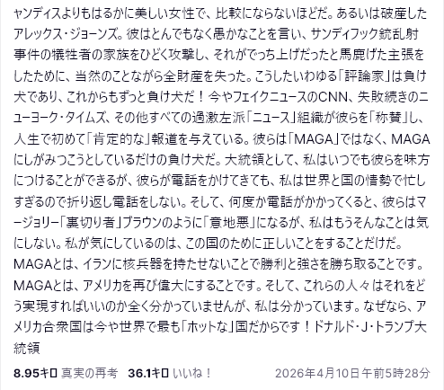 きっとトランプ支持者たちは、これはフェイクニュースだと言い出し、このようなツイートは出さないよう諭し、そうしなければ晩節を汚すと言うだろう。