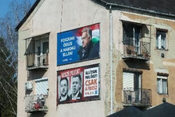 ハンガリー国内に掲示されているオルバン首相とマジャル氏の広告(Photo by Gettyimages)