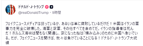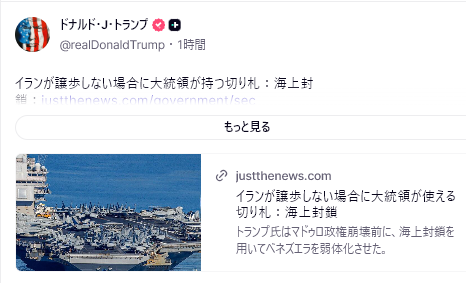 CNNの報道によると、トランプはWHを出発してフロリダに向かう際、記者団から中国がイランへの武器供与を準備しているという情報について質問された。大統領は「中国がそんなことをすれば、中国は大変なことになるぞ」と答えたものの、具体的な対策については言及しなかった。