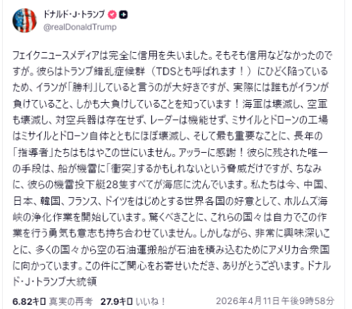 4/11にパキスタンで行われた米イラン停戦交渉は、極めて異様な状況下で行われた。この異様な状況は、米国とイランの双方が自らを戦争の勝者と信じ、両者とも勝利者として振る舞ったために生じた…