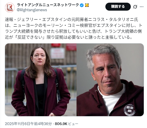 NYポストの記事。トランプ1期目のときにJ・コミーFBI長官の娘の検事がエプスタインに取引を持ち掛けたと。