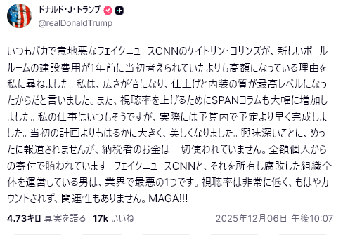 トランプはその日の首脳会談でも「日本の防衛費の負担は米国にとって不公平だ。私の政権ではその是正をなし遂げたい」と話していた。