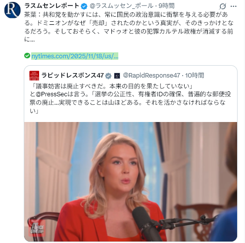 11/17Rasmussen Reports<Trump’s Antitrust Agenda Has Strong Support=トランプ大統領の反トラスト政策は強い支持を得ている>