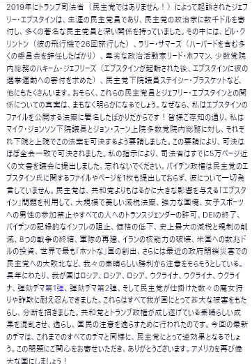 今日までに、バイデン政権下の連邦政府がティナ・ピーターズ事件に関与していたことを示す十分な証拠 がありました。連邦政府がティナ・ピーターズ氏の起訴・投獄に向けた取り組みを主導、指示、あるいは重要な役割を担っていたとすれば、トランプ大統領は彼女に恩赦を与える権限を持つことになるという議論があります。