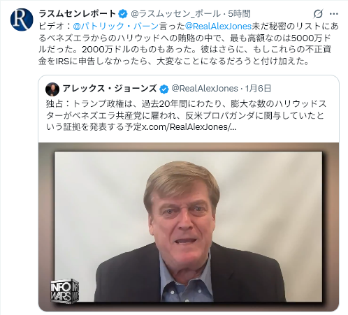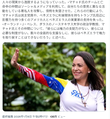 白川氏はトランプの今回のベネズエラ攻撃には、世界の不正選挙(勿論米国も含む)の証拠集めの可能性もあることに触れていないのは残念。民主党の2020年不正選挙に加担したビル・バー司法長官(共和党)やマイク・ペンス副大統領(共和党)も起訴・入獄が相当。ベテラン政治家は民主・共和を問わず、腐敗している。