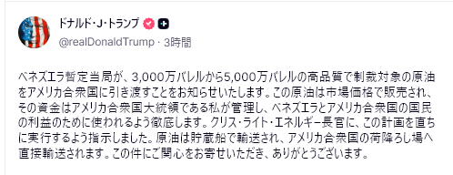 その意味で、今回の大統領拘束は「突然の武力介入」ではなく、ベネズエラに対して段階的に進められてきた政策が「総仕上げ」に入ったという連続性のある出来事だと考えるべきだろう。
